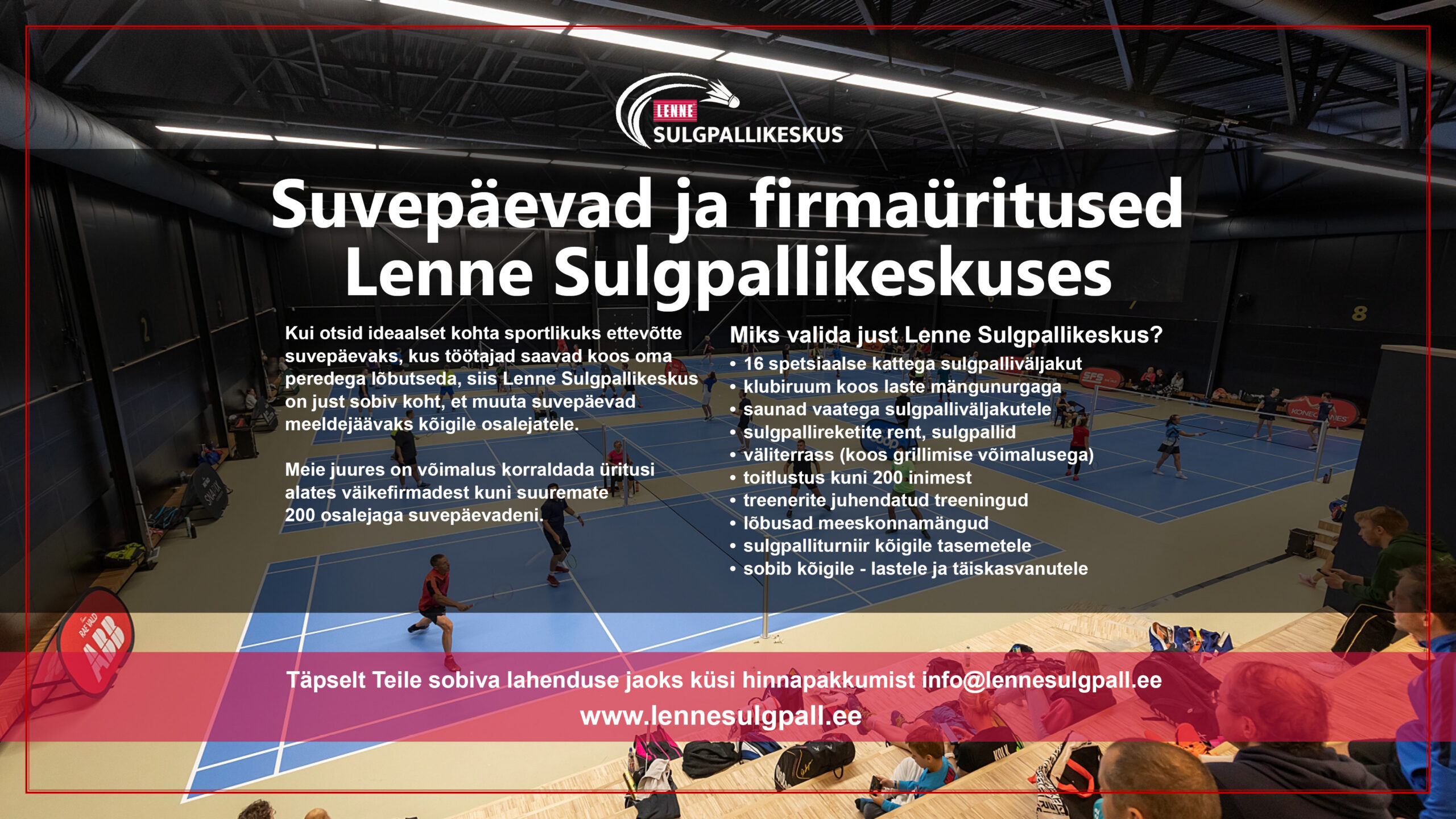 Lenne Sulgpallikeskuses on võimalik pidada sünnipäevi ja firmaüritusi